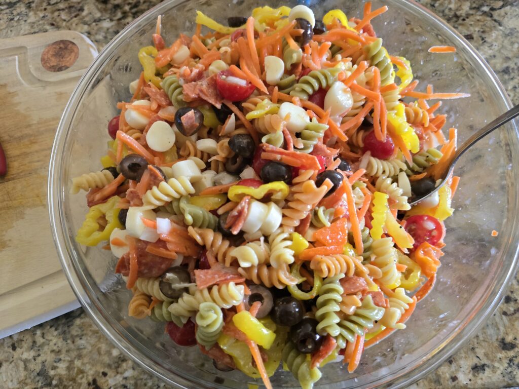 Any vegetable you like is good in this salad. Zucchini and broccoli are both delicious in here, but my kids like the carrots better.